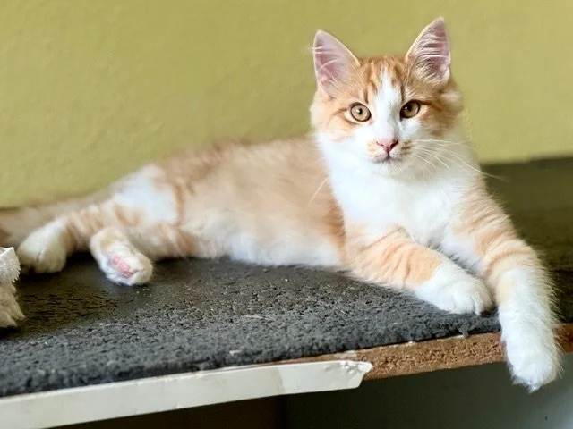Scooby and Scrappy are 5-month-old twin male kittens with fluffy orange-and-white fur and the sweetest, most gentle personalities. They are playful and curious, love cozy naps and soft cuddles, and an affectionate way of looking at you like you’re their whole world. Scooby and Scrappy would make wonderful companions for someone looking for a loving kittens to grow up with and shower with affection. We would love this identical pair to go together but will separate for the right homes.